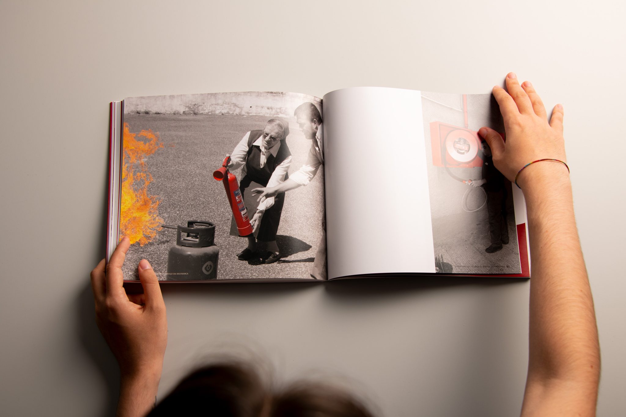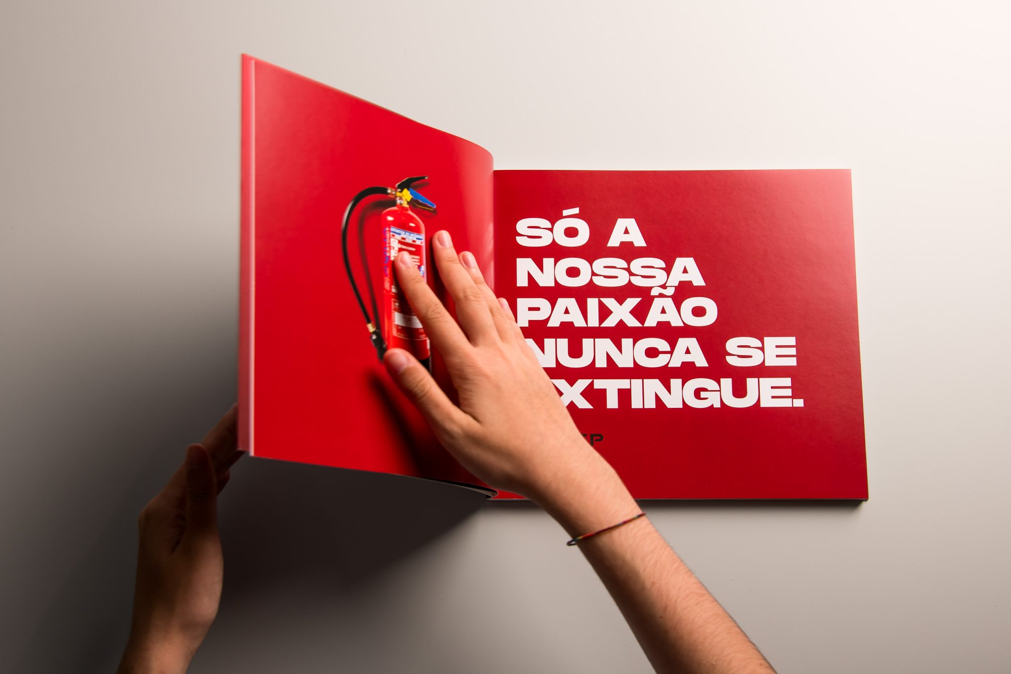 Um livro marcado pelo tom vermelho que pinta vastas páginas e imagens generosas que espelham a essência da empresa.